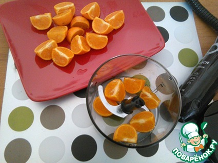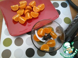 Нарезаем мандарины на 4 части и изельчаем их блендером до состояния пюре.