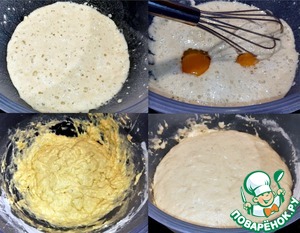 В поднявшееся тесто просеяла 110 г муки и обмяла его.