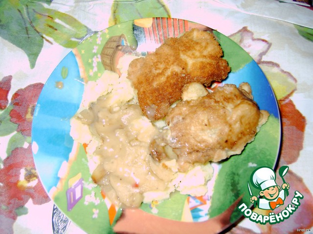 В качестве гарнира у нас было пюре из картошечки с подливчиком. Приятного аппетита!!!