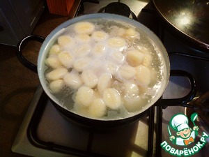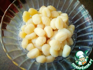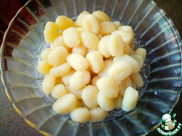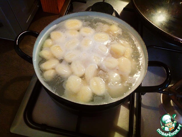 Ньокки бросаем в кипящую воду и варим 2 минуты (или как написано на упаковке).