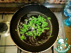 Базилик моем, мелко нарезаем и на масле обжариваем.