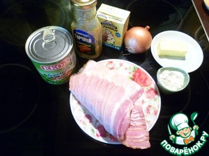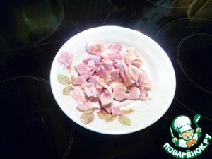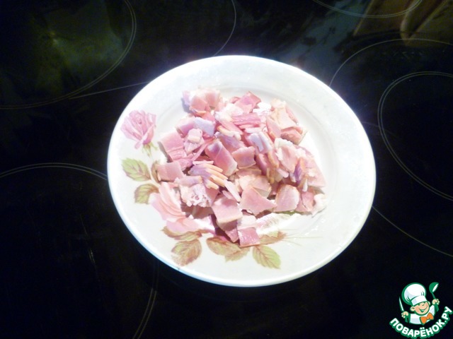 Бекон так же нарезаем кубиком (3-4 полоски)