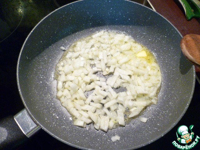 В 1 ст. л. масла обжариваем лук до мягкости