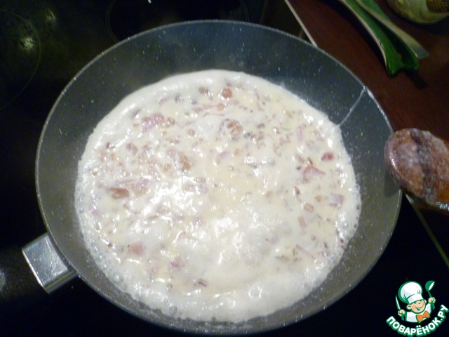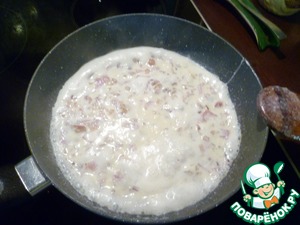Влить сливки, тщательно перемешать