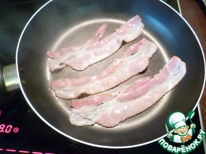 На сухой сковороде обжарить оставшийся бекон до хрустящей корочки, снять с огня