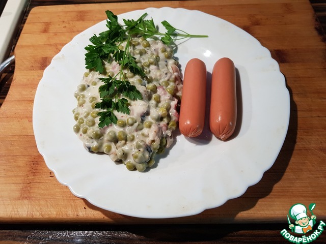 - Горошек зеленый (большая 340 мл) — 1 бан.
