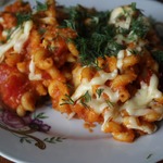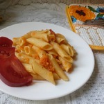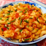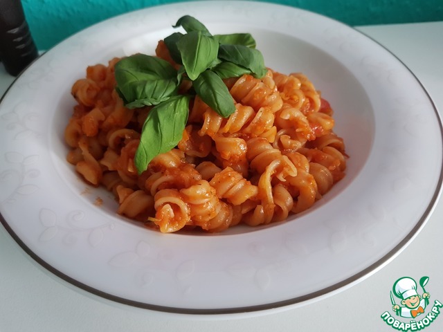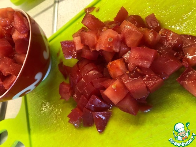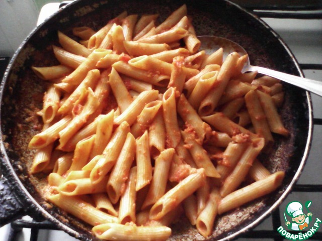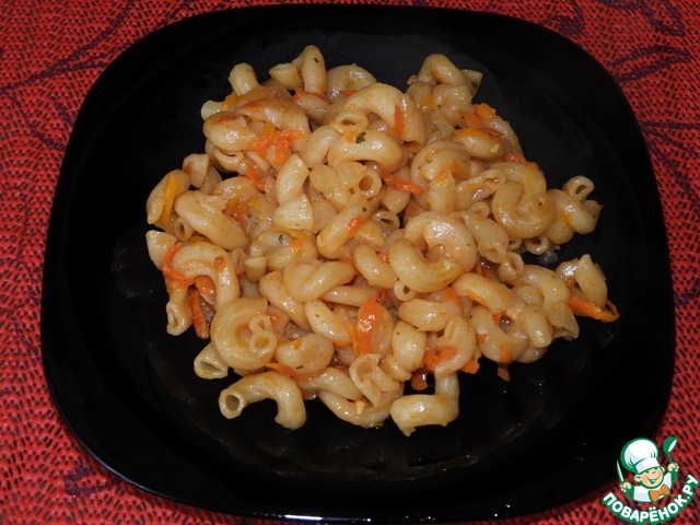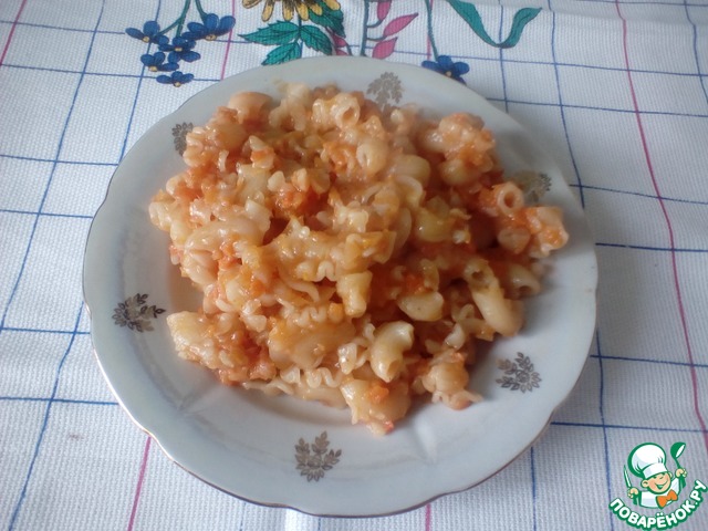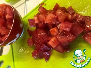 За пять минут до готовности макарон добавить нарезанный кубиком помидор. Все хорошо перемешать.