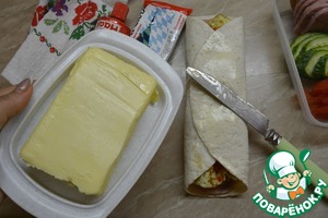 - Масло сливочное (для жарки омлета + для смазывания буррито) — 50 г