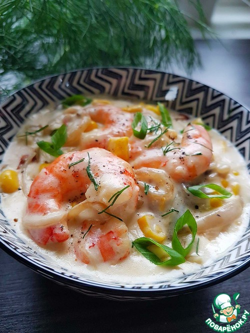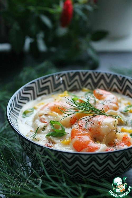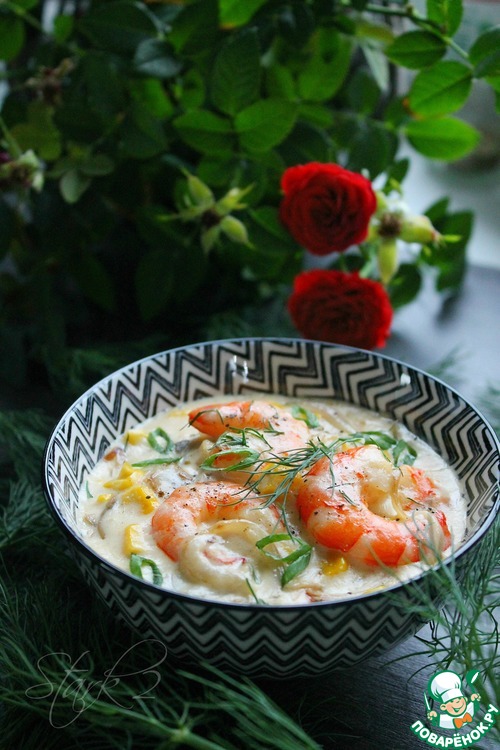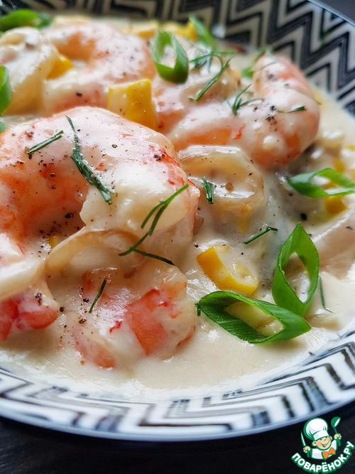 Рецепт «Креветки в нежном сливочном соусе»:
