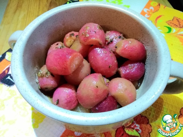 Если хотите новых вкусовых ощущений, то вам сюда. В запеченном виде редис имеет более нежный вкус и менее резкий запах. Хоть разок да стоит, попробовать эту закуску и понять, по вкусу она вам или нет.