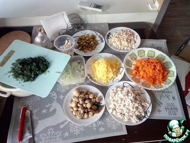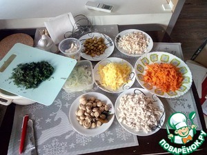 Начинаем с заготовки всех слоёв. Шампиньоны мариновала сама, за сутки.