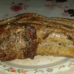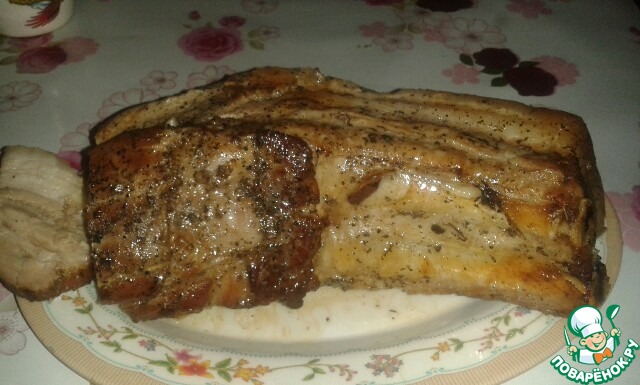 Грудинку промываем и маринуем в масле с перцем и солью. Оставим на 40 минут в теплом месте.