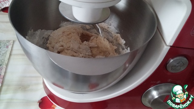 В чаше миксера или просто в большой миске смешать муку, соду гашеную уксусом, сахар, сделать углубление и влить яйца.