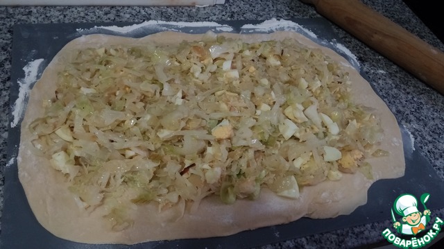 - Яйцо куриное (В тесто 2 яйца и в начинку 4) — 6 шт
