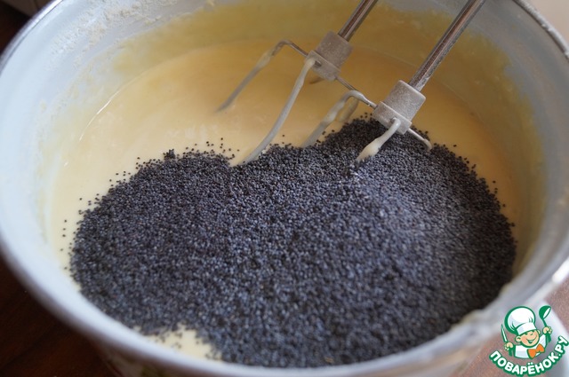 Добавить мак и ванилин. Аккуратно перемешать. Консистенция густой сметаны.