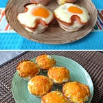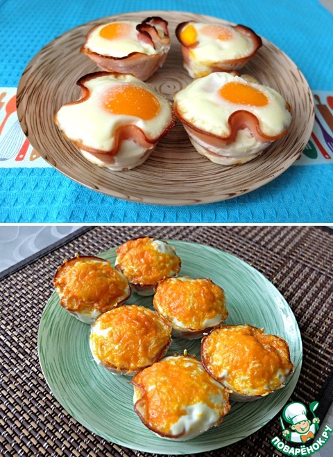 [+5]Банальная яичница с колбасой лёгким движением руки превратилась в красивые и оригинальные кексики! Просто, быстро и вкусно! У меня обычная варенка! Завтрак удался!