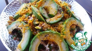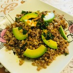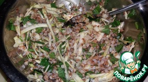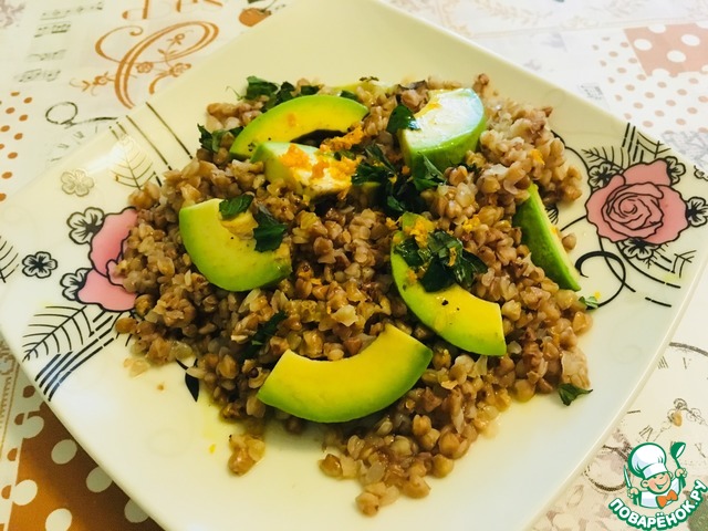 Обьединяем гречку с кабачками, авокадо и мелконарезанной мятой.