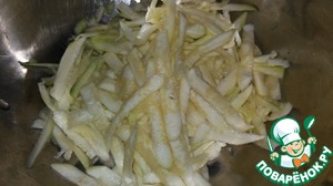 Помыть и мелко порезать кабачки. Я натерла на крупной терке.