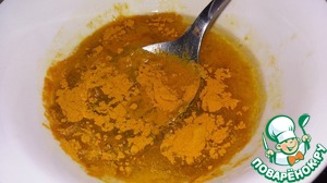 Смешиваем масло с соком, куркумой, перцем и солью. Взбиваем миксером или помещаем смесь в банку, закрываем крышкой и встряхиваем.