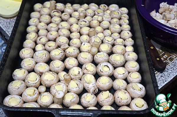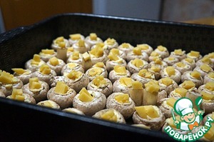 Вложить в каждую шляпку сливочного масла, сколько поместится.
