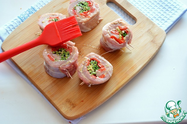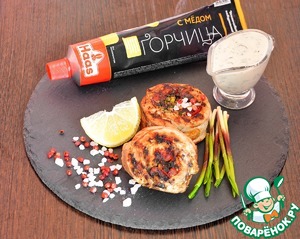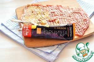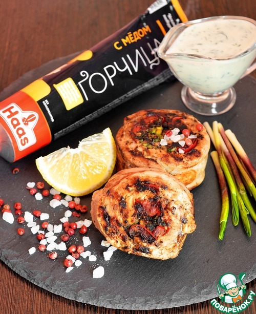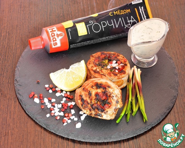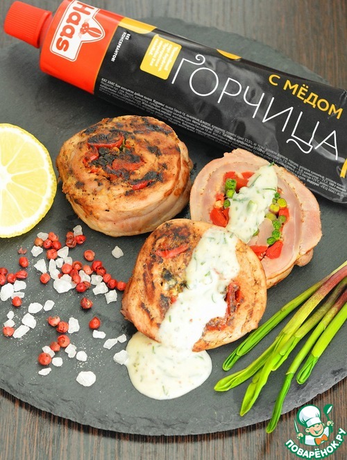 Для приготовления этих рулетиков я решила использовать горчицу с мёдом ТМ "HAAS". У неё приятный сладковато-острый вкус, отлично подходит к блюдам на гриле.