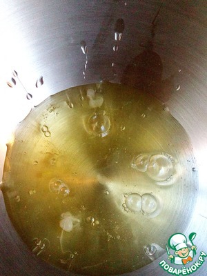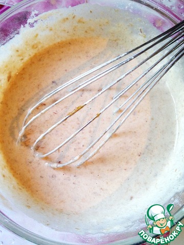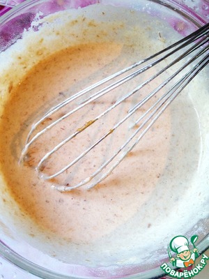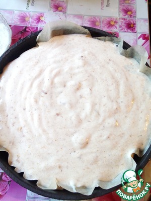 Получается очень воздушное тесто, которое нужно перелить в форму с пергаментом.