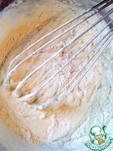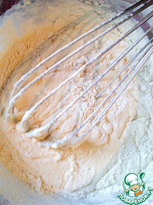 Добавлять в тесто по 1 столовой ложке белковую пену, аккуратно перемешивая.