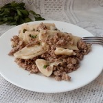 В следующий раз попробуй пельмени или вареники на этом тесте поджарить( на среднем огне, под крышкой, до золотистого цвета с обеих сторон). Вкусно, до безобразия...