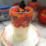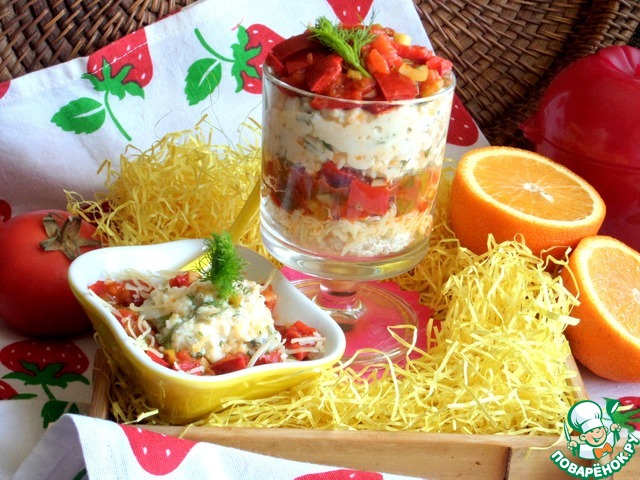 В креманки или стаканы выложить яичный салат, а сверху соус из помидоров.