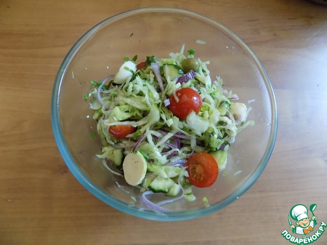 Рецепт «Салат с молодой капустой и моцареллой»: