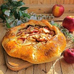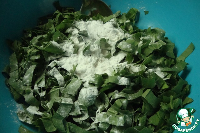 Все ингредиенты для начинки соединить в чашке или просто положить на кружок теста сначала щавель, затем яблоки и посыпать сахаром.
