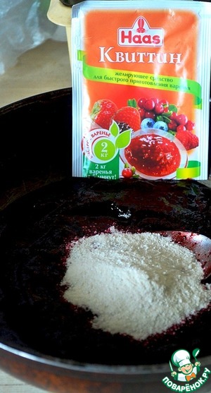 Выливаем содержимое чаши в толстостеннную сковороду, высыпаем содержимое упаковки с пектином.