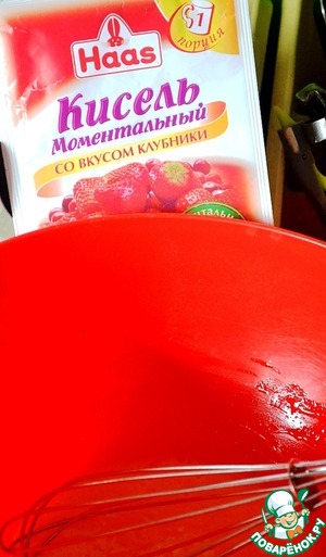 Разводим тесто на пышки - взбиваем клубничный кисель от ТМ ХААС с яйцами