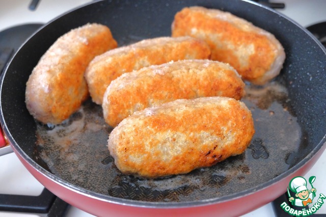 Перед формовкой рулетиков руки смочить водой. Из фарша сформовать круглые лепешки.