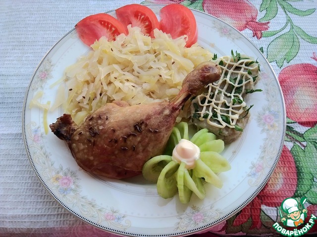 Рецепт «Утиные ножки с капустой и кнедликами»: