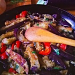 [+5]Фото со сковородкой не случайно!)) хочу показать размер моего обжорства! Это половина приготовленного блюда. Гигантомания меня когда -нибудь погубит))) я решила, что мне будет мало полкило, пришлось в два приема обжаривать баклажаны. Половина по рецепту, вторая отдельно. Добавила зеленый лук и петрушку.