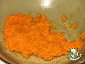 Тыкву (300 г) отварить в небольшом количестве воды, слить воду и размять в пюре.