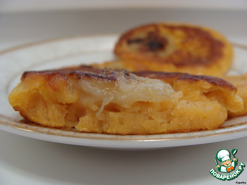 Вкусные тыквенные оладушки с различными добавками. К супу очень вкусненько оладушки с мясом, а на десерт с бананчиком. У нас в семье оладьи не очень уважают... но эти мы готовили два дня подряд. И съедали со скоростью звука.