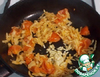 Кладем на сковороду чеснок на минутку, перемешиваем.