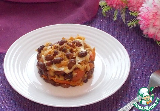 И засыпаем отварную или консервированную фасоль. Солим, перчим по вкусу.