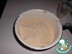 Для начала в большой миске смешиваем муку — 3 стакана, маргарин — полпачки (примерно 90 граммов), масло сливочное — 100 г.