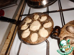 По истечении времени выкладываем в углубления тесто — в центр чайную ложку, по краям — 1/2 чайной ложки.