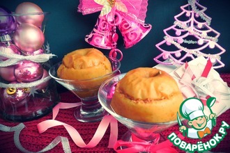 Сок, который образовался после запекания, слить - у меня получилось 70 мл сока. Остудить и всыпать в сок желатин. Или используйте вместо сока воду. Желатин подогреть, не доводя до кипения.