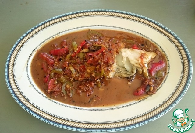 Добавляем перцы, немного обжариваем. Самое главное, чтобы овощи не попали на рыбу.