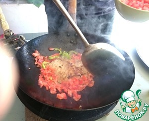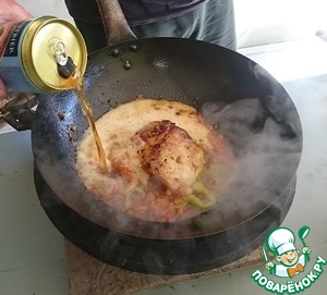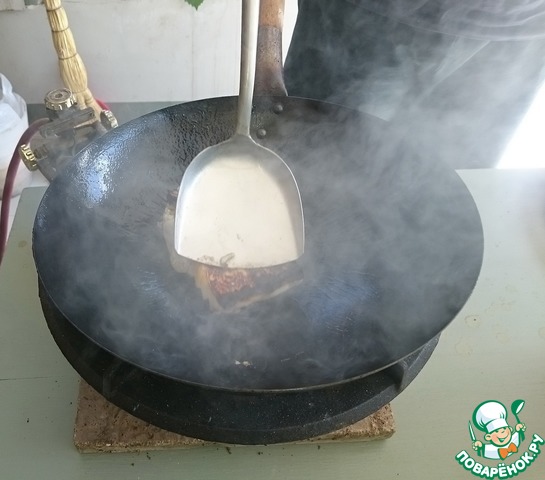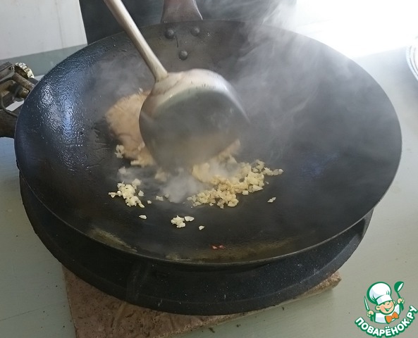 Обжариваем минуту - две. Все делается на сильном огне. -