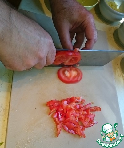 Нарезаем небольшим кубиком помидоры.