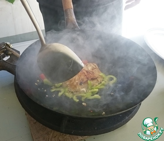 После каждой готовой порции протираем вок и дальше по кругу. -
