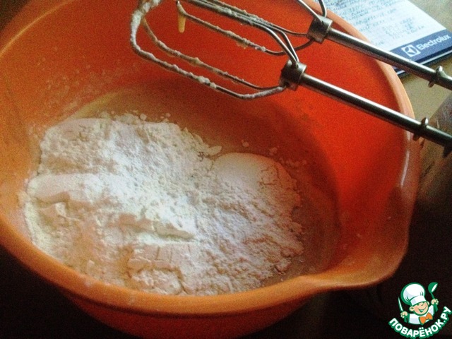 Добавить просеянную с разрыхлителем муку и замесить тесто.