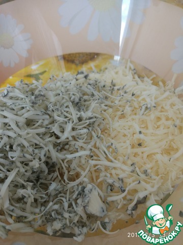- Сыр твердый (у меня были остатки пармезана и дор блю, но можно взять любой сыр по вкусу) — 100 г