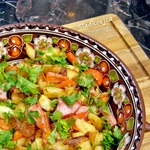 Картофель с копченой колбасой и перцем